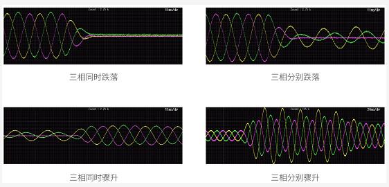 使用者可透過(guò)此功能獨(dú)立設(shè)置三相電壓的數(shù)值,模擬電壓的不平衡。搭配高/低電壓穿越功能,可按照測(cè)試需求模擬電壓分別或同時(shí)的跌落與驟升。