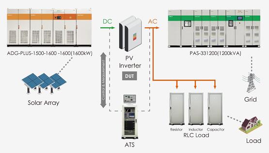 艾普斯電源全新推出的智能逆變器測(cè)試系統(tǒng),為臺(tái)灣業(yè)界指標(biāo)性光伏逆變器測(cè)試平臺(tái),內(nèi)建已編程相關(guān)測(cè)試標(biāo)準(zhǔn)NB/T32004、IEEE1547.1、EN50530、CNS15382、CNS15599的測(cè)試項(xiàng)目,使用者可透過(guò)遠(yuǎn)控軟件保存并分析測(cè)試數(shù)據(jù)。已有客戶采用此系統(tǒng)做為實(shí)際的應(yīng)用,整套系統(tǒng)包含PAS能饋型電網(wǎng)模擬電源1200kVA、ADG+大功率可編程直流電源1600kW、RLC負(fù)載箱、功率分析儀,以及客制化遠(yuǎn)控軟件。