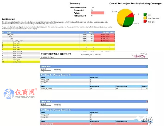 Tessy 支持一鍵執(zhí)行測(cè)試,并自動(dòng)對(duì)測(cè)試結(jié)果進(jìn)行評(píng)估,可生成多種形式的報(bào)告。