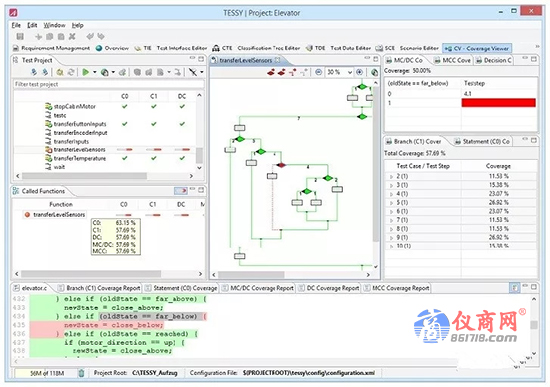 Tessy 提供分支覆蓋、修正條件/ 判定覆蓋MC/DC(Modified Codition/Decision Coverage)、多條件覆蓋MCC(Multiple ConditionCoverage) 等多種覆蓋度分析。