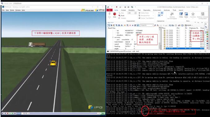 同外場(chǎng)環(huán)境相比,實(shí)驗(yàn)室環(huán)境能夠提供可重復(fù)性更好的無(wú)線測(cè)試環(huán)境,方便搭建復(fù)雜交通場(chǎng)景,這利于車聯(lián)網(wǎng)功能和軟件算法迭代測(cè)試。完善的實(shí)驗(yàn)室測(cè)試可以有效地降低研發(fā)周期,降低后期測(cè)試成本。實(shí)驗(yàn)室測(cè)試和外場(chǎng)測(cè)試是互相補(bǔ)充的關(guān)系。通過(guò)完善的實(shí)驗(yàn)室測(cè)試以及外場(chǎng)測(cè)試可以對(duì)智能聯(lián)網(wǎng)汽車的商用化提供可靠的保障。隨后羅德與施瓦茨展示了交通場(chǎng)景硬件在環(huán)系統(tǒng)架構(gòu)和測(cè)試結(jié)果。硬件在環(huán)測(cè)試結(jié)果展示如下: