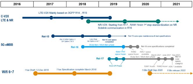 支持5G聯(lián)網(wǎng)同樣成為汽車的新賣點(diǎn)。隨后羅德與施瓦茨也簡(jiǎn)單介紹了5G原理,應(yīng)用和剛剛凍結(jié)的3GPP R16標(biāo)準(zhǔn)情況。目前LTE-V2X主要在3GPP的Release 14 和Release 15規(guī)范中定義,而5G-NR-V2X的標(biāo)準(zhǔn)化的主要工作從3GPP Release 16開(kāi)始,但是考慮到技術(shù)的復(fù)雜程度,目前看來(lái)Release 16不太可能完成所有的工作,目前Release 16的主要工作還集中在RAN1當(dāng)中。C-V2X和5G的詳細(xì)標(biāo)準(zhǔn)的路線圖如下: