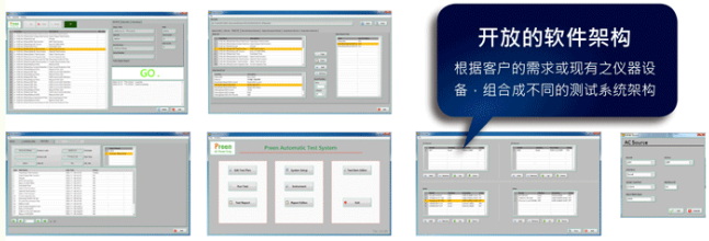 采用開(kāi)放式系統(tǒng)設(shè)計(jì)架構(gòu),除了有配置標(biāo)準(zhǔn)的儀器儀表外,若有預(yù)算考量另可搭配客戶暨有設(shè)備組成系統(tǒng)測(cè)試