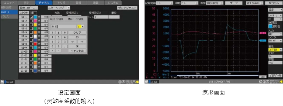 僅需將傳感器連接線上標(biāo)記的靈敏度系數(shù)(S)輸入至LR8450 轉(zhuǎn)換比的靈敏度框中,就能直接讀出其熱流量的數(shù)值,無(wú)需進(jìn)行復(fù)雜的轉(zhuǎn)換比運(yùn)算。