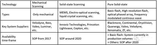 與此同時(shí),供應(yīng)商通過開發(fā)各種光束控制技術(shù),不斷提高激光雷達(dá)的耐用性、尺寸和成本。這些技術(shù)既有機(jī)械也有MEMS和全固態(tài)。據(jù)Magney所述,機(jī)械激光雷達(dá)(例如Velodyne128通道產(chǎn)品)由于可以產(chǎn)生360度的點(diǎn)云,非常適合地圖構(gòu)建。但是對(duì)于量產(chǎn)汽車的部署,基于固態(tài)器件(MEMS或OPA(光學(xué)相控陣))的激光雷達(dá)非常好,它們也可以在自己的視野內(nèi)產(chǎn)生一個(gè)點(diǎn)云。成本更低Flash器件也在出現(xiàn)。它們中有一些被設(shè)計(jì)成接近探測(cè)器,成本低于100美元,缺點(diǎn)是分辨率有限,無法對(duì)物體進(jìn)行分類。