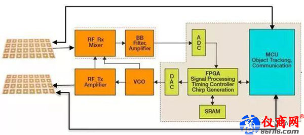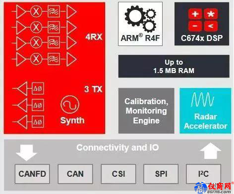 TI的汽車毫米波雷達(dá)傳感器將射頻(RF)和模擬功能與數(shù)字控制功能集成到了一個(gè)芯片中