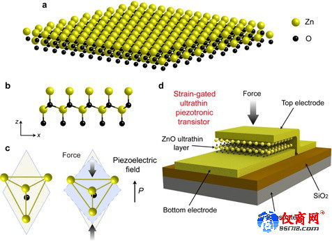 中國科學(xué)院外籍院士、中國科學(xué)院北京納米能源與系統(tǒng)研究所首席科學(xué)家王中林,于2006年利用氧化鋅納米線受應(yīng)力時(shí),產(chǎn)生的壓電電勢來調(diào)控場效應(yīng)晶體管的載流子輸運(yùn)特性,即后來所說的壓電電子學(xué)晶體管,并且首次提出了壓電電子學(xué)的概念。壓電電子學(xué)晶體管是一種利用完全不同于傳統(tǒng)CMOS器件工作原理的新型器件。這種器件利用金屬-壓電半導(dǎo)體界面處產(chǎn)生的壓電極化電荷(即壓電電勢),作為柵極電壓來調(diào)控晶體管中載流子的輸運(yùn)特性,并且已經(jīng)在具有纖鋅礦結(jié)構(gòu)的壓電半導(dǎo)體材料中得到了廣泛證實(shí)。這種具有二端結(jié)構(gòu)的晶體管不僅創(chuàng)新地利用界面調(diào)控替代了傳統(tǒng)的外部溝道調(diào)控,并且有可能打破溝道寬度的限制。