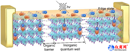 近日,中國科學院理化技術研究所博士吳雨辰、中科院院士江雷課題組與天津大學教授付紅兵,中科院外籍院士、美國加州大學伯克利分校教授張翔團隊合作,制備出高質量的二維鈣鈦礦單晶納米線陣列,首次發(fā)現(xiàn)二維鈣鈦礦納米線的邊緣態(tài)光電導效應,并實現(xiàn)了目前世界上最高靈敏度的鈣鈦礦光電探測器。