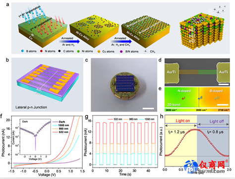 相關(guān)研究成果以“Seamless lateral graphene p-n junctions formed by selective in situ doping for high-performance photodetectors”為題于2018年12月5日發(fā)表在Nature Communications上(Nature Communications, 9, 5168 (2018))。