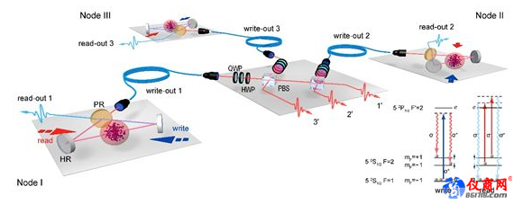 以高亮度光與原子糾纏為基礎,研究人員通過制備多對糾纏,用3光子干涉成功地將3個原子系綜量子存儲器糾纏起來。