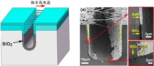 黃輝團(tuán)隊(duì),首次研究了納米線橋接生長(zhǎng)中的寄生沉積效應(yīng),發(fā)明了一種結(jié)合氣流遮擋效應(yīng)與表面鈍化效應(yīng)的橋接生長(zhǎng)方法,解決了寄生沉積問(wèn)題;并首次實(shí)現(xiàn)了“無(wú)漏電流”的GaN橋接納米線,在此基礎(chǔ)上研制出高穩(wěn)定性、低功耗以及高靈敏度的集成納米線氣體傳感器。特別是,GaN材料是第三代半導(dǎo)體,具有優(yōu)異的穩(wěn)定性(耐高溫、抗氧化、耐酸堿腐蝕)和生物兼容性,適用于嚴(yán)酷環(huán)境下的應(yīng)力應(yīng)變以及液體和氣體樣品的檢測(cè)(實(shí)驗(yàn)證明氫氟酸腐蝕48小時(shí)未對(duì)GaN納米線產(chǎn)生影響),應(yīng)用領(lǐng)域非常廣泛。這項(xiàng)技術(shù)推動(dòng)了傳感器芯片的發(fā)展。