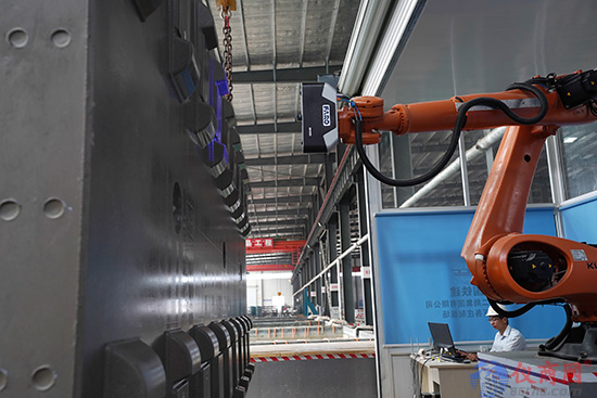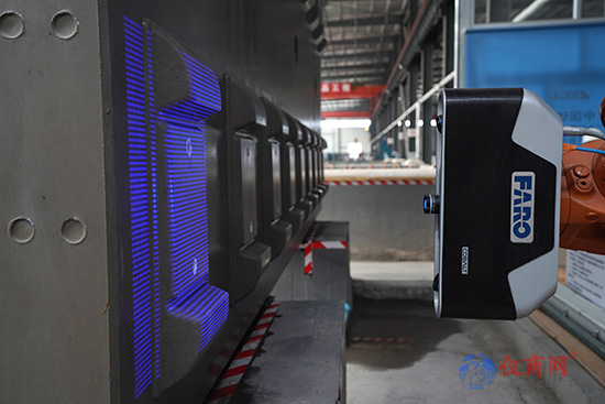 據(jù)中鐵二十二局集團(tuán)二公司京沈客專京冀段項(xiàng)目經(jīng)理秦飛介紹,該軌道板采用的扣件對(duì)中心距精度要求非常高,允許偏差為正負(fù)0.5毫米。通過集成智能機(jī)器人和三維成像儀的高速鐵路CRTSIII型軌道板自動(dòng)化檢測(cè)系統(tǒng)進(jìn)行檢測(cè),其檢測(cè)過程與軌道板生產(chǎn)流程一致,無需人工干預(yù),每塊軌道板檢測(cè)時(shí)間由45分鐘縮短至6分鐘,檢測(cè)精度達(dá)正負(fù)0.15毫米,完全滿足高鐵建設(shè)規(guī)范要求。