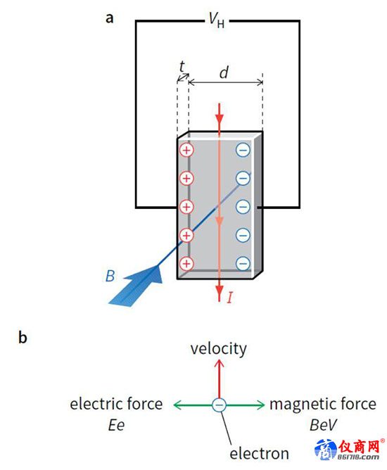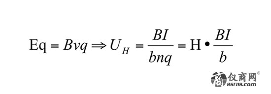 (其中 B 是外加磁場磁感應(yīng)強(qiáng)度,I 為導(dǎo)體電流,b 為導(dǎo)體延磁場方向的厚度,n 是導(dǎo)體載流子的體密度,q 是帶電粒子的電量,H 是霍爾系數(shù),可由測量儀器直接得出。)