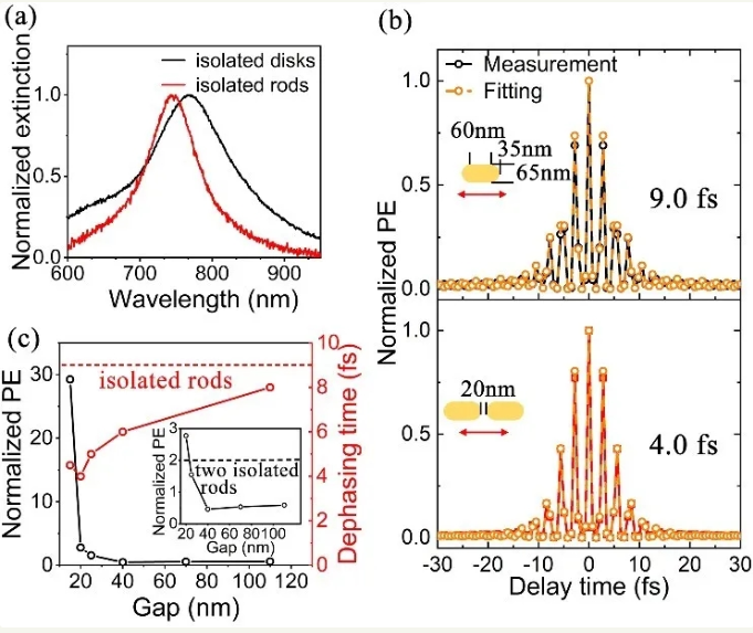 最近研究團隊利用超高時空分辨光發(fā)射電子顯微鏡(PEEM),首次從近場微觀角度揭示了局域表面等離激元近場增強與退相干時間的內(nèi)在關(guān)聯(lián),相關(guān)研究成果以標題“Correlation between near-field enhancement and dephasing time in plasmonic dimers”于4月24日發(fā)表在物理學權(quán)威期刊《物理評論快報》(Physical Review Letters, DOI:10.1103/PhysRevLett. 124.163901)上。
