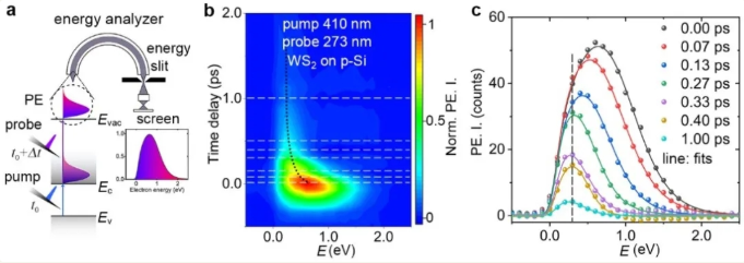 圖5 WS2/hBN/p-Si樣品時間和能量分辨PEEM測量,電子能量分布曲線可以由費米-狄拉克分布擬合。