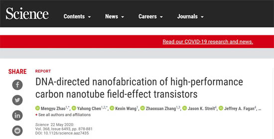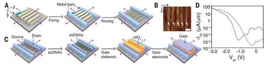 課題組基于DNA模板的高性能碳納米管晶體管研究取得的新成果,具有實(shí)現(xiàn)基于生物模板的大規(guī)模電子器件的潛力,同時(shí)也可應(yīng)用于未來的生物傳感器與驅(qū)動(dòng)器。