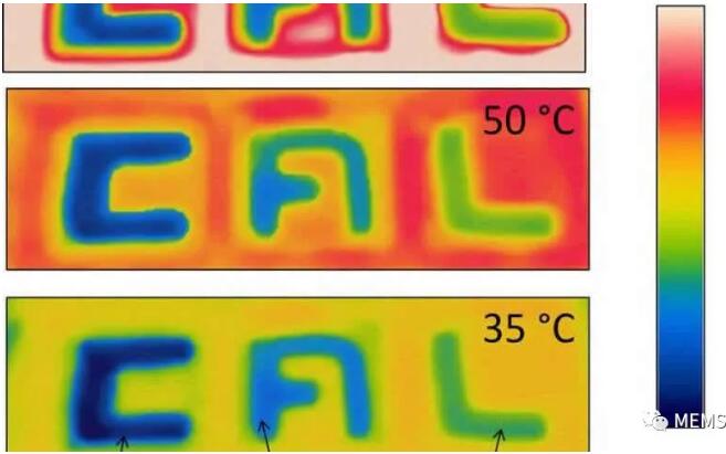 盡管物體的實(shí)際溫度在35-65攝氏度之間變化很大,但通過(guò)紅外相機(jī),人們會(huì)清楚地看到與實(shí)際溫度無(wú)關(guān)的低溫“C-A-L”字母。吳教授表示:“我們既可以抹去真實(shí)的信息,也可以創(chuàng)造虛假的信息。環(huán)境溫度再高,C-A-L都能保持低溫。”