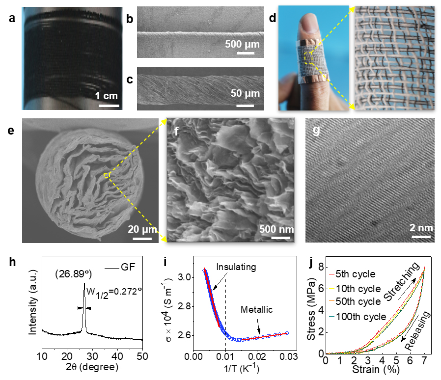 圖2. 柔性石墨烯纖維的結(jié)構(gòu)及基本性能。