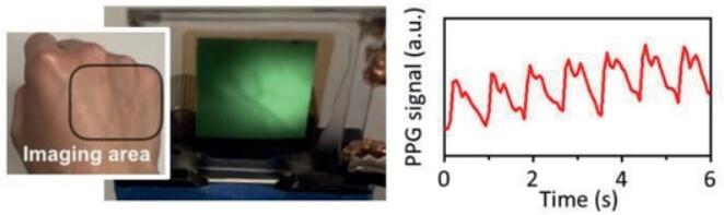 該圖像傳感器的另一個(gè)重要特點(diǎn)是可以有效地提供光學(xué)讀出圖像和電子讀數(shù)。例如,當(dāng)研究人員將紅外光照射在受試者的手背上時(shí),該圖像傳感器在記錄受試者心率的同時(shí)提供了受試者的血管圖像。