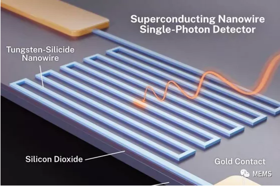 該納米線直徑僅有50到100納米,由硅化鎢薄膜制成。冷卻到絕對(duì)零度以上幾度,這種材料就可以達(dá)到超導(dǎo)狀態(tài)。這意味著納米線中的電子只需從入射光子中吸收少量的能量即可產(chǎn)生電信號(hào)。同時(shí)低溫也限制了探測(cè)器中的隨機(jī)電子噪聲,這種特性在如此低光量的傳感應(yīng)用中非常重要。