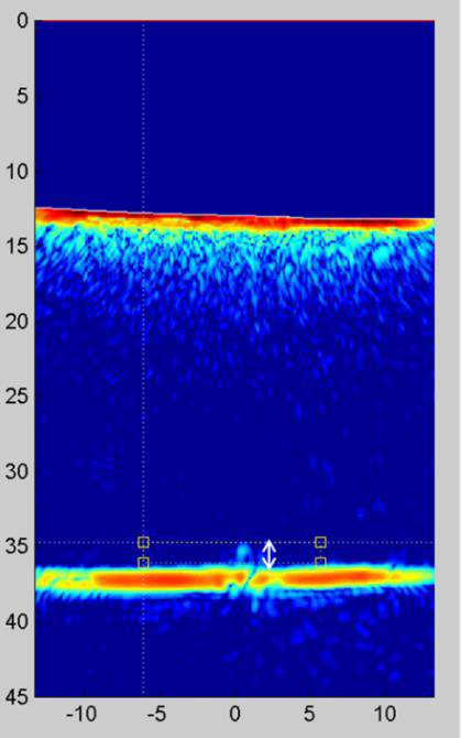 缺陷的長(zhǎng)度由?BAE?Systems?公司使用?MPI?測(cè)得,公差為?2?mm;深度通過超聲相控陣?TFM?圖像測(cè)得,如下圖?1?所示: