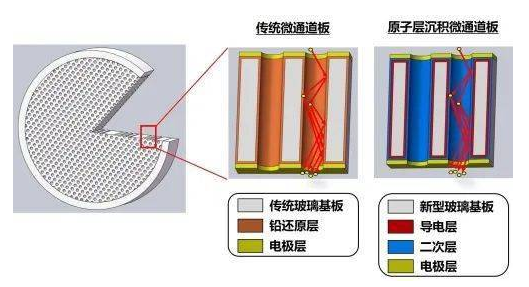 圖1 ALD-MCP與傳統(tǒng)MCP結(jié)構(gòu)示意圖