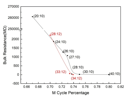 圖5 ALD-MCP M相循環(huán)百分比與體電阻