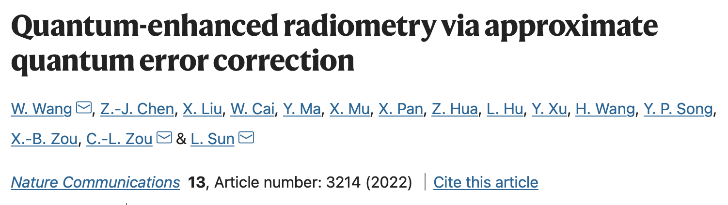 近日,中國(guó)科學(xué)技術(shù)大學(xué)鄒長(zhǎng)鈴研究組與清華大學(xué)交叉信息研究院孫麓巖研究組合作,在超導(dǎo)量子系統(tǒng)中首次利用玻色量子糾錯(cuò)編碼來(lái)提升量子精密測(cè)量的靈敏度。相關(guān)成果在線發(fā)表于《自然?通訊》(Nature Communications)。