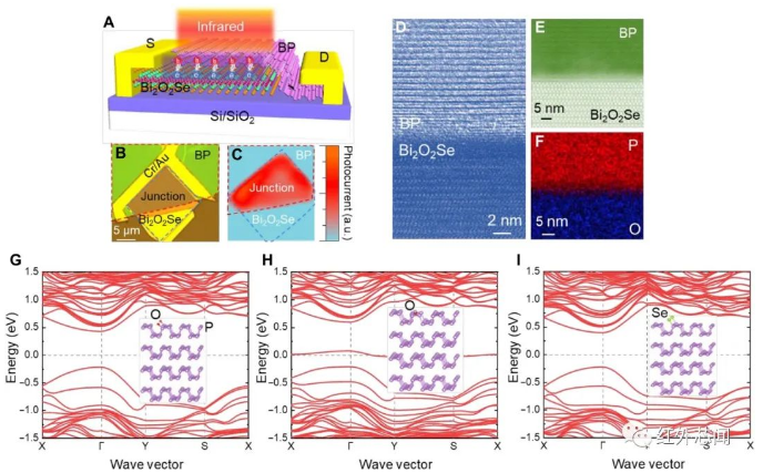 圖1 BP/Bi2O2Se范德華紅外探測(cè)器結(jié)構(gòu)和BP/Bi2O2Se界面示意圖