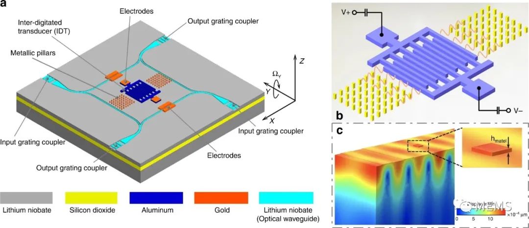 西北工業(yè)大學(xué)機(jī)電學(xué)院教授、博士生導(dǎo)師常洪龍及其團(tuán)隊(duì)提出并數(shù)值研究了一種全新的基于聲光效應(yīng)的高靈敏度行波陀螺儀,用于測(cè)量旋轉(zhuǎn)角速度。與傳統(tǒng)SAW陀螺儀利用SAW頻率變化來表征旋轉(zhuǎn)角速度不同,本研究利用聲光效應(yīng)檢測(cè)由機(jī)械應(yīng)變引起的折射率變化,通過光波導(dǎo)的輸出光功率強(qiáng)度測(cè)量角速度。這項(xiàng)研究成果已發(fā)表于近期發(fā)行的Microsystems & Nanoengineering。