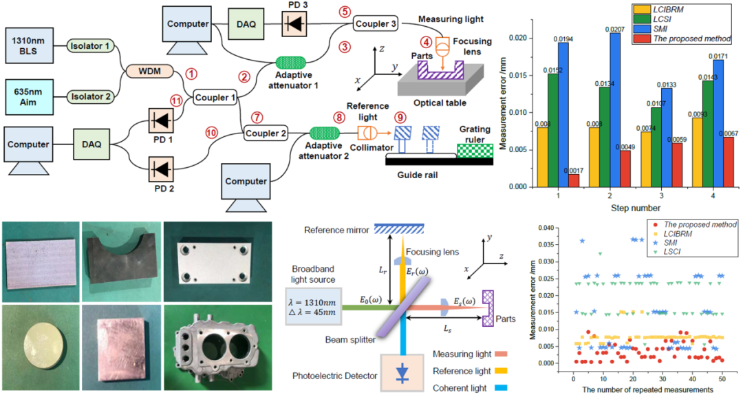 工業(yè)零件尺寸和關(guān)鍵參數(shù)的高精度測量是保證制造精度和裝配可靠性的關(guān)鍵。低相干測量方法是一種利用光學(xué)干涉現(xiàn)象的測量方法,具有精度高、測量范圍大、無損等優(yōu)點,在工業(yè)測量領(lǐng)域顯示出巨大的應(yīng)用潛力。然而,目前工業(yè)上的低相干性測量方法大多假設(shè)零件表面反射率恒定或變異性很小,導(dǎo)致這些方法適應(yīng)性差,適用范圍有限。