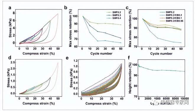 圖3、SMF和SMF/CB氣凝膠的機(jī)械性能