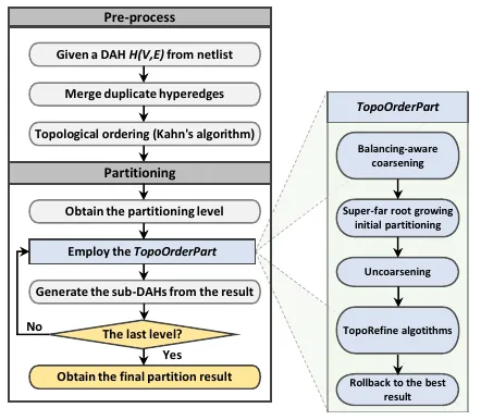 為解決數(shù)十億規(guī)模的電路仿真中調(diào)度驅(qū)動(dòng)的劃分問(wèn)題,2024國(guó)際計(jì)算機(jī)輔助設(shè)計(jì)會(huì)議(ICCAD)收錄了研究團(tuán)隊(duì)最新研究成果,在 TopoOrderPart: a Multi-level Scheduling-Driven Partitioning framework for Processor-based Emulation 的論文中,創(chuàng)新性地提出一種拓?fù)湫蚓飧兄碾娐穭澐炙惴蚣?。該方法通過(guò)將大規(guī)模電路根據(jù)拓?fù)湫蚓舛冗M(jìn)行高效的聚類(lèi),巧妙地利用電路節(jié)點(diǎn)的連接度和拓?fù)渚舛全@取初始結(jié)果,進(jìn)而在每一層展開(kāi)電路上進(jìn)行有效的改善,實(shí)現(xiàn)了編譯流程中的高質(zhì)量劃分。這一創(chuàng)新性方法不僅填補(bǔ)了調(diào)度驅(qū)動(dòng)的電路劃分方向的研究空白,也為高性能的硬件仿真提供了重要研究思路。該工作的第一作者為集成電路學(xué)部2022級(jí)博士研究生畢舜陽(yáng),西安電子科技大學(xué)為第一完成單位,游海龍教授為通訊作者。