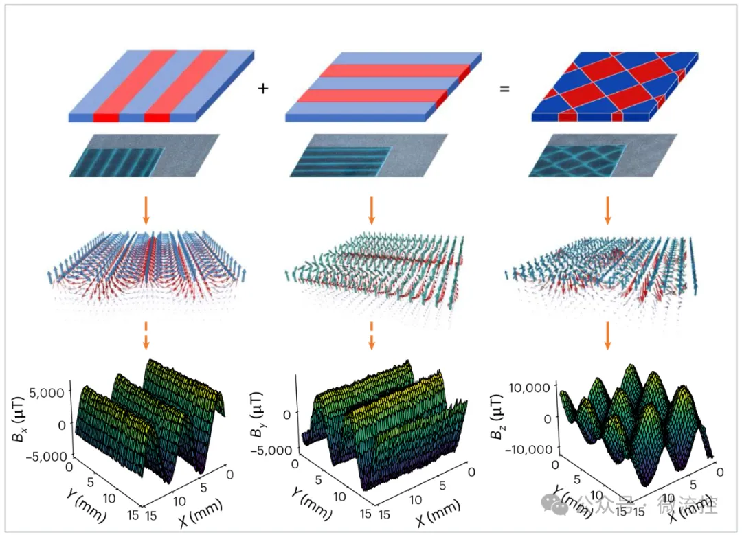 由于磁場(chǎng)滿足疊加原理,研究人員發(fā)現(xiàn),將兩個(gè)正弦磁化的Halbach陣列磁場(chǎng)進(jìn)行正交疊加后,二維自解耦的特性在一定條件下通過(guò)簡(jiǎn)化可以被推廣到三維。