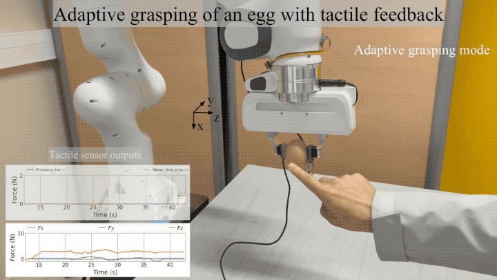 另外,通過(guò)編程,可以切換機(jī)械臂示教模式和自適應(yīng)抓取模式(根據(jù)切向力實(shí)時(shí)動(dòng)態(tài)調(diào)整法向夾持力)。