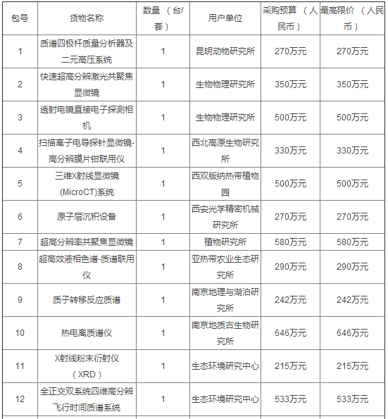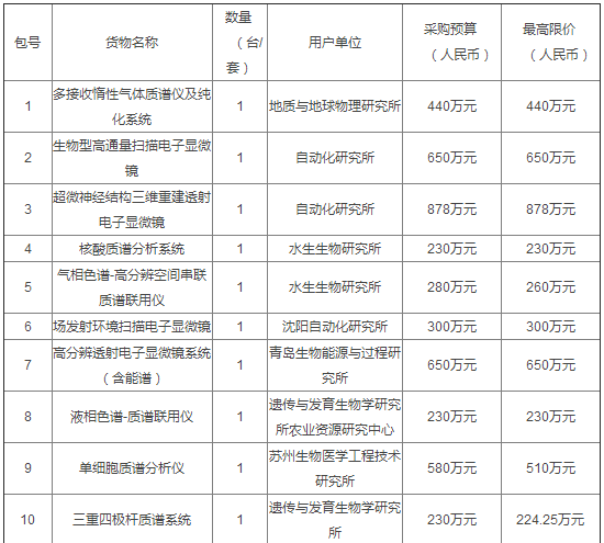 項目名稱:中國科學院2019年儀器設備部門集中采購項目(第一批)