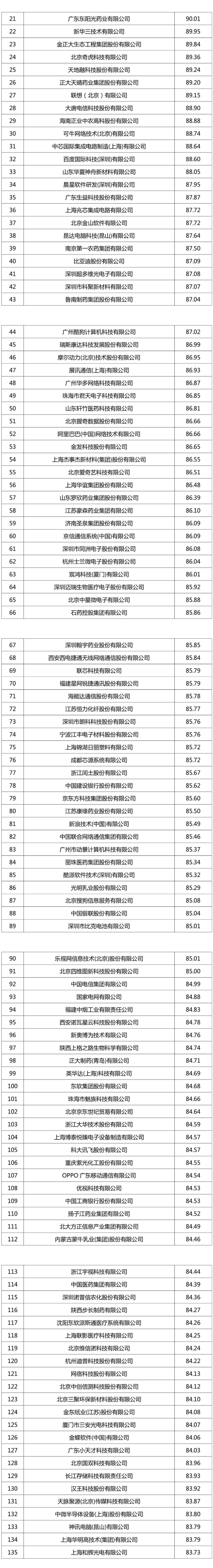 榜單前十分別是華為、北京智谷睿拓、深圳貝特瑞、大疆科技、上海諾基亞貝爾、中石化、搜狗科技、大北農(nóng)、中興、飛天誠信。