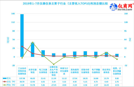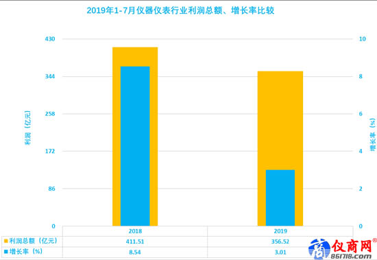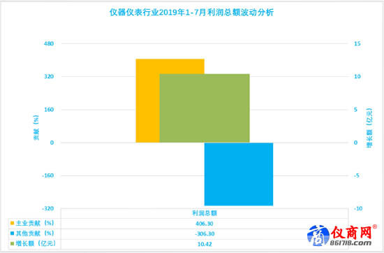 2、儀器儀表行業(yè)2019年1-7月利潤總額波動分析