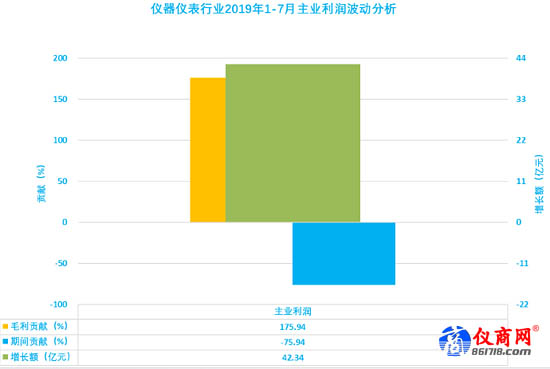3、儀器儀表行業(yè)2019年1-7月主業(yè)利潤波動分析