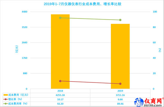 4、儀器儀表行業(yè)2019年1-7月成本、費用波動分析