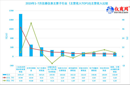 11、2019年1-7月儀器儀表主要子行業(yè)(主營收入TOP10)主營收入比較