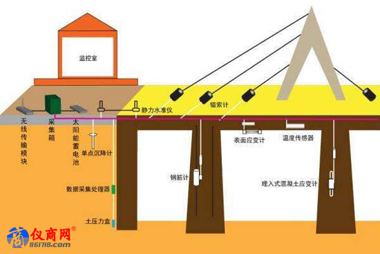 現(xiàn)在已經(jīng)有不少橋梁管理中應用到了傳感器,如:湖北武漢市城市已經(jīng)有1000多個傳感器隨時為30多座大橋“把脈”健康;安徽合肥構(gòu)建了城市橋梁安全監(jiān)測系統(tǒng),387個傳感器助力繁華大道跨南淝河大橋主跨和金寨路高架橋安全,實時監(jiān)測橋梁的索力、應變、傾角、位移、撓度、加速度、結(jié)構(gòu)溫度等變化。專家介紹,給橋梁安裝各類傳感器和采集設備,就像醫(yī)院給病人戴上24小時監(jiān)測儀一樣,這些傳感器和采集設備會實時將橋梁的結(jié)構(gòu)狀況、基礎沉降、車輛監(jiān)測抓拍等各種監(jiān)測數(shù)據(jù),通過互聯(lián)網(wǎng)存儲至云計算數(shù)據(jù)中心服務器中,實現(xiàn)對橋梁的全天候自動化監(jiān)測。