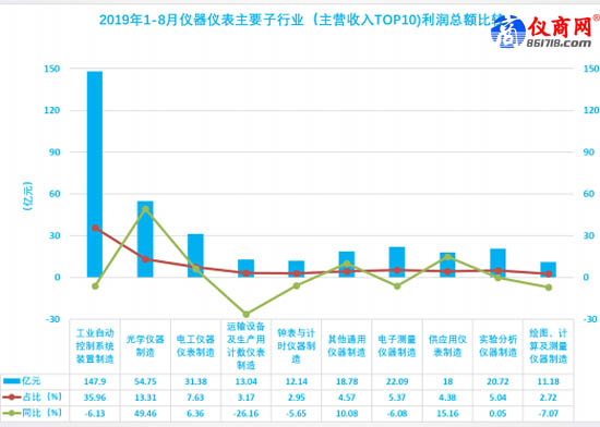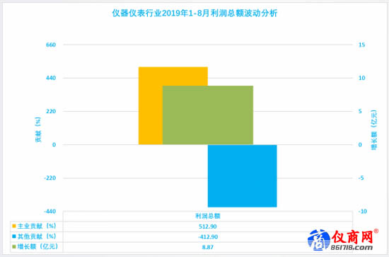 1.3 儀器儀表行業(yè)2019年 1-8月主業(yè)利潤波動分析