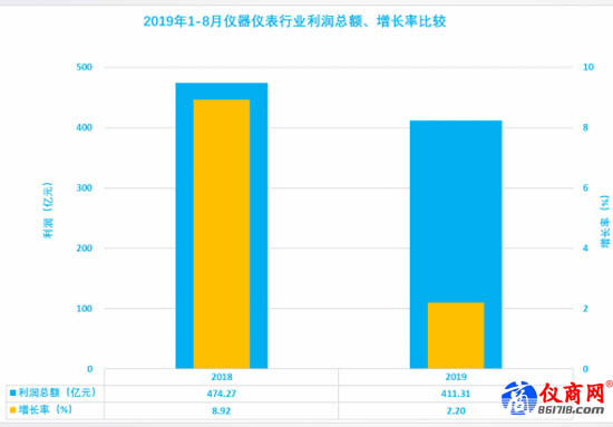 1-8月儀器儀表行業(yè)實現(xiàn)利潤總額411.31億元,同比增長2.20%、比上年下降6.72個百分點(diǎn)。
