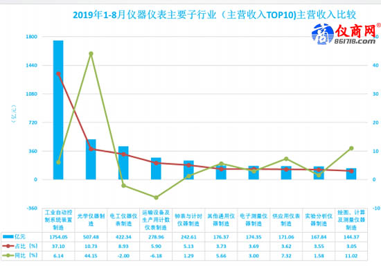 1.10 2019年1-8月儀器儀表主要子行業(yè)(主營收入TOP10)主營收入比較