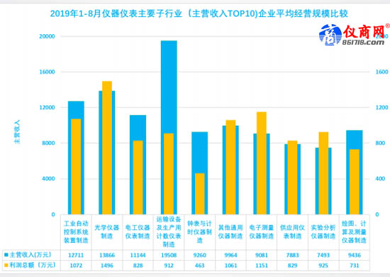 1.12 2019年1-8月儀器儀表主要子行業(yè)(主營收入TOP10)企業(yè)平均經(jīng)營規(guī)模比較