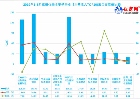 1.13 2019年1-8月儀器儀表主要子行業(yè)(主營收入TOP10)出口交貨值比較