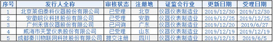 據(jù)上交所官網(wǎng)公告顯示,目前有5家儀器儀表企業(yè)正申請?jiān)诳苿?chuàng)板上市,包括廣州禾信儀器股份有限公司、成都秦川物聯(lián)網(wǎng)科技股份有限公司、威海市天罡儀表股份有限公司、安徽皖儀科技股份有限公司以及北京萊伯泰科儀器股份有限公司。