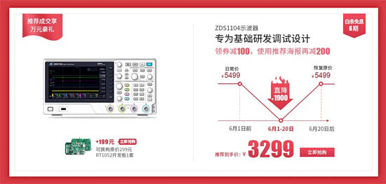 ZDS1104示波器,直降1900,領(lǐng)券還可減100,使用推薦海報再減200,到手價3299元