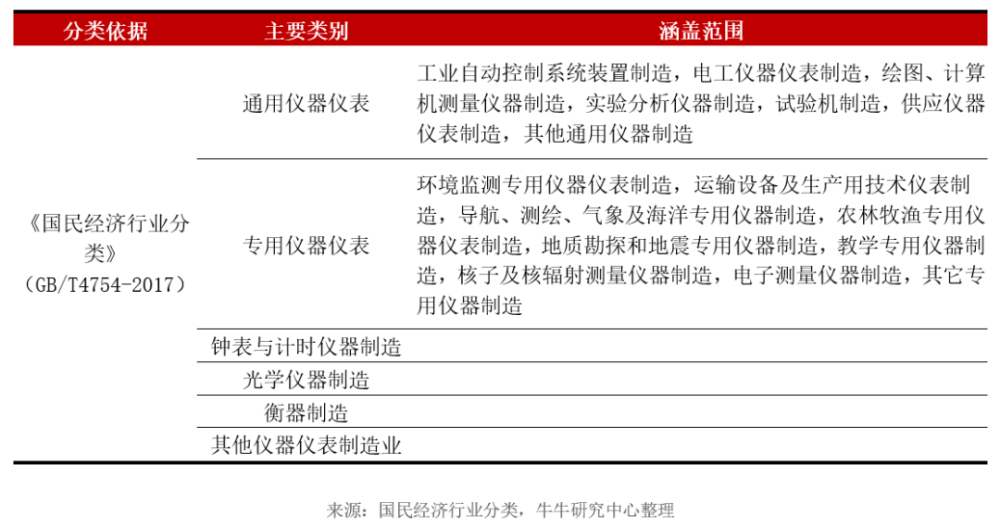 為了進(jìn)一步理清儀器儀表行業(yè)的大致情況,本文將從行業(yè)劃分、產(chǎn)業(yè)結(jié)構(gòu)、產(chǎn)能、上市公司營收結(jié)構(gòu)等方面,進(jìn)行行業(yè)梳理。
